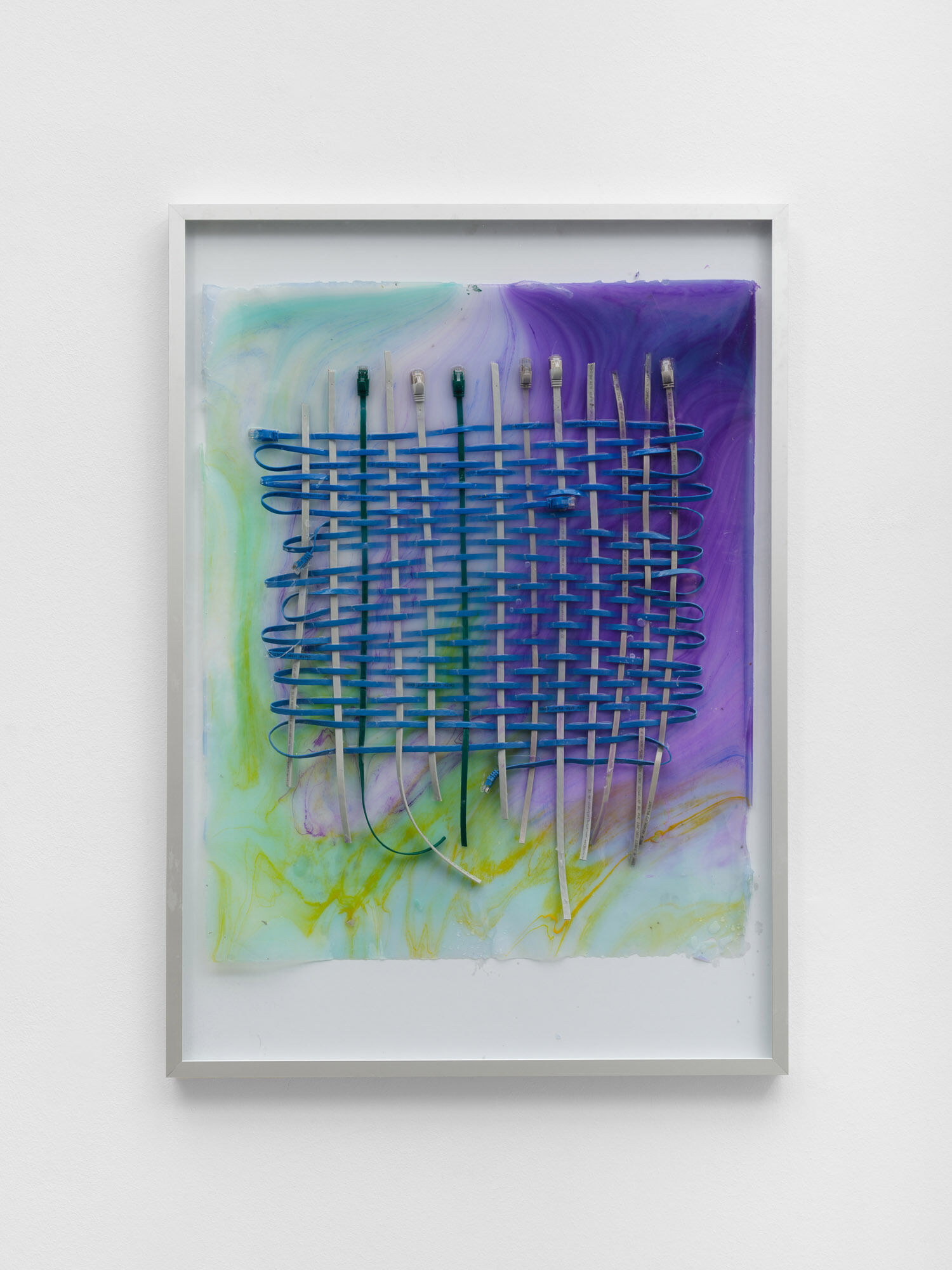 acrylic on canvas, NFC tags, metal frame