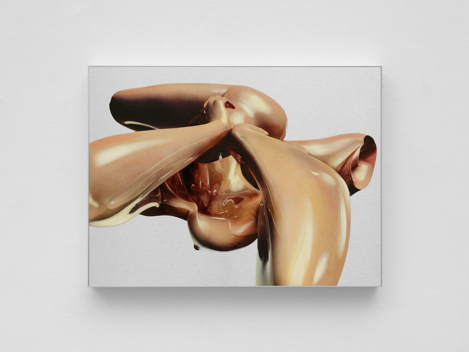 Jan Robert Leegte is one of the first Dutch artists to work on and for the Internet since the 1990s. The works from the JPEG series try to create an image programmatically fully expressing that signature compression. An image that is made from barely nothing, yet fully present in its blazing appearance. A work deeply material, expressing itself through the language of code and codec transferred to a plate of aluminum. This is not a JPEG depicting an image. The JPEG is the image itself.