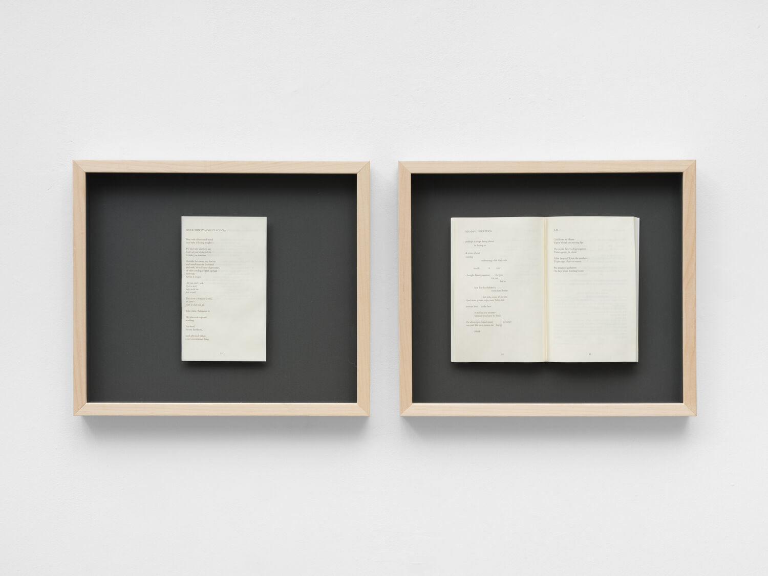 Framed diptych containing a book and a single page
